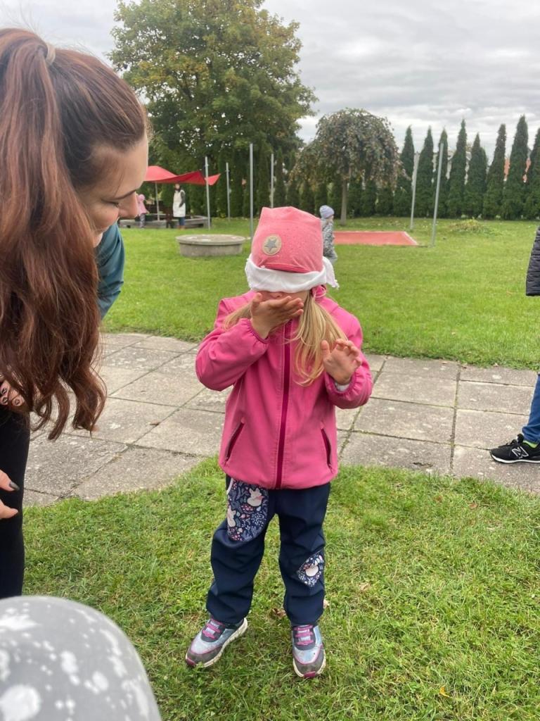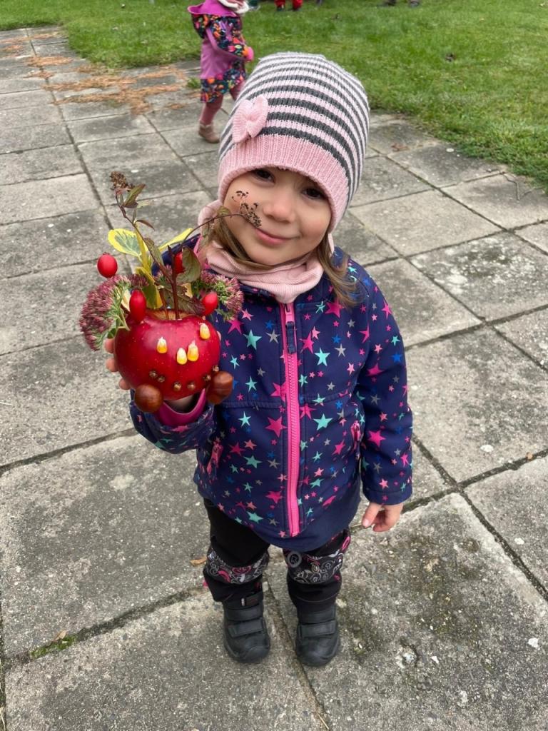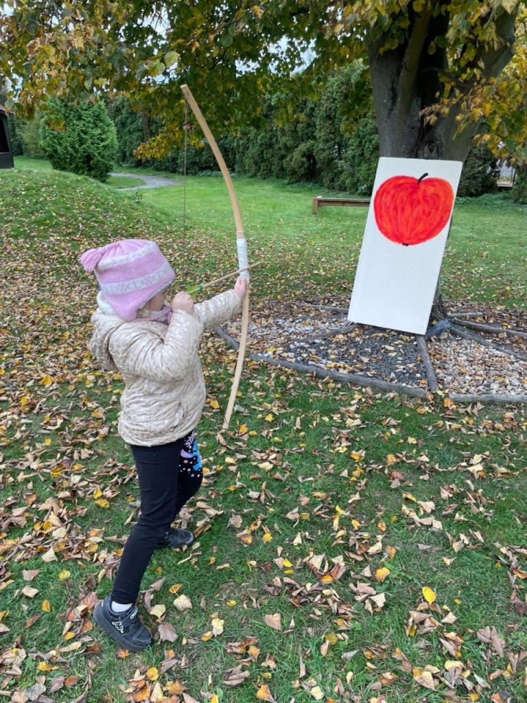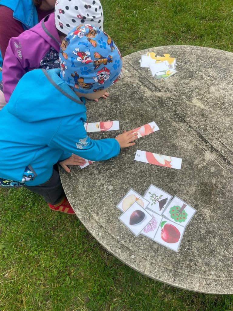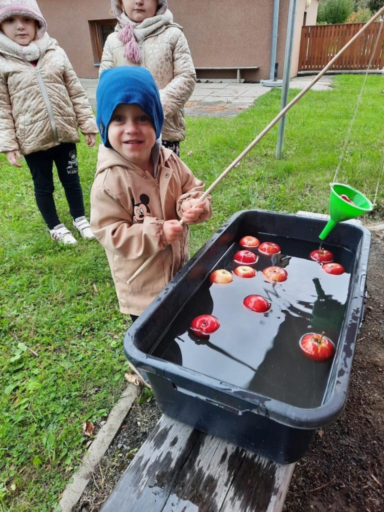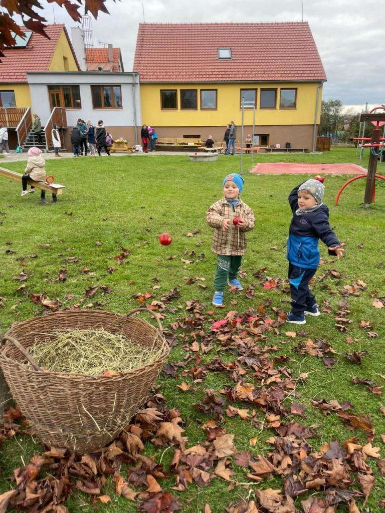 Voňavé jablíčko nás provázelo celým dopolednem, hráli jsme si, soutěžili i tvořili pod širým nebem.